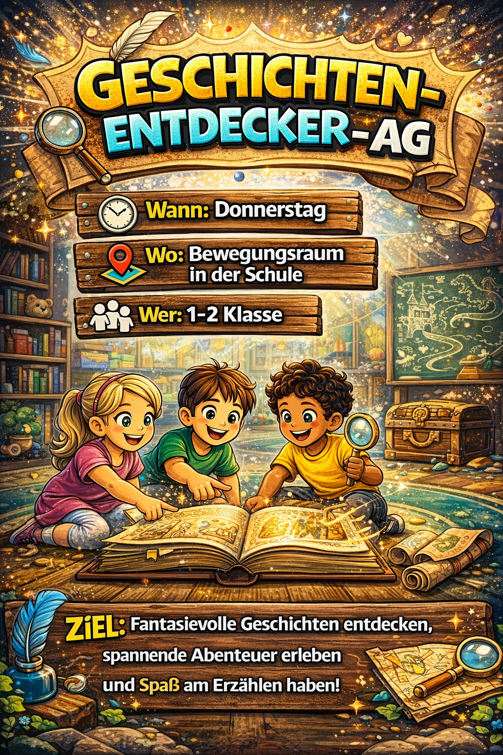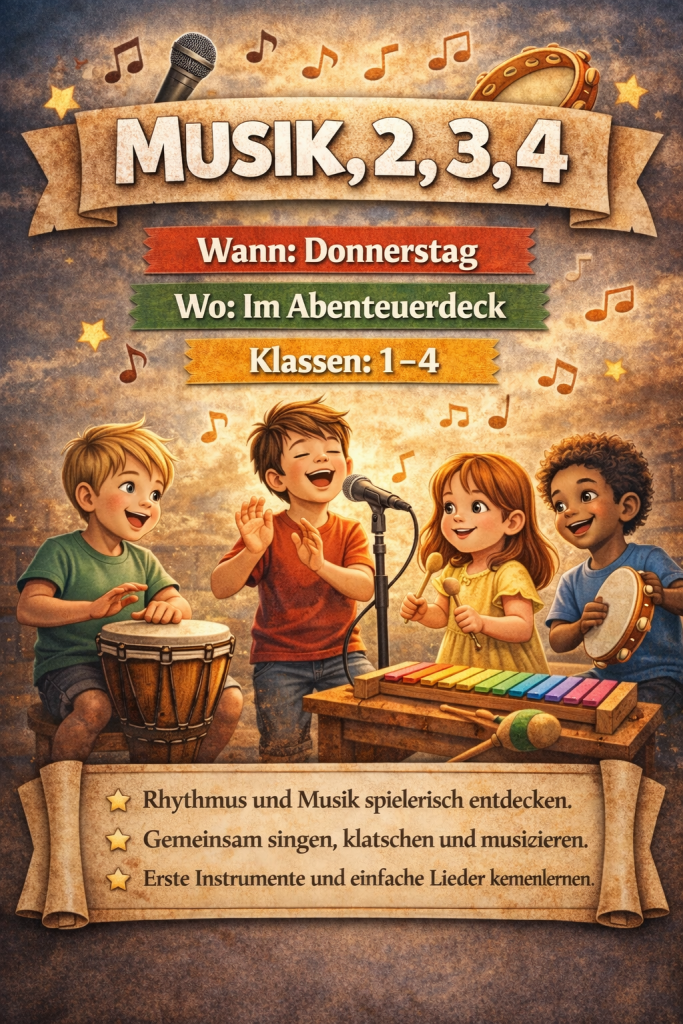 An drei Nachmittagen pro Woche bieten wir hochwertige Bildung, Gemeinschaft und Entfaltungsmöglichkeiten bis 14:45 Uhr an. Dazu gehören: