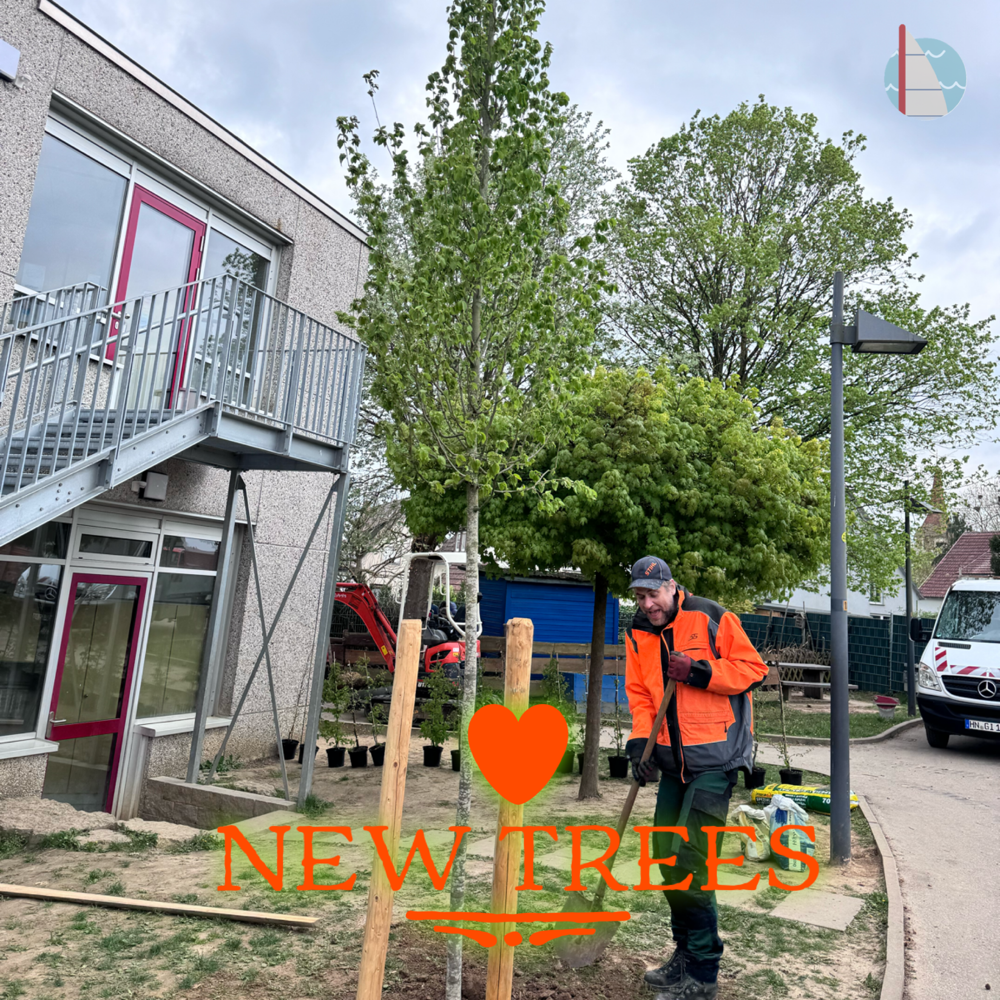 Im oberen Bereich unseres Schulgeländes, direkt beim Hochbeet am Grundschulgebäude, ist diese Woche richtig was passiert: Neue Bäume wurden gepflanzt – und bringen frisches Grün auf unseren Campus!