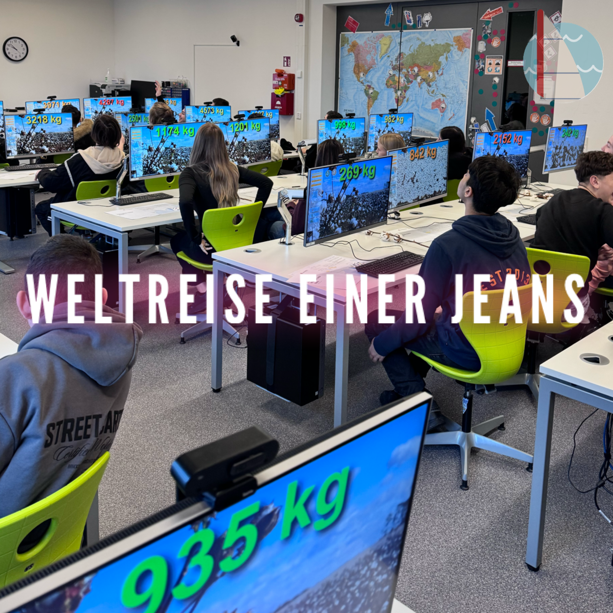 Auch die ökologischen Folgen der globalen Produktion wurden thematisiert. Die Schülerinnen und Schüler berechneten die Transportentfernungen der Jeans und schätzten, wie viel CO₂ allein durch den weltweiten Transport entsteht. Dabei wurde klar, dass selbst ein einzelnes Kleidungsstück einen erheblichen ökologischen Fußabdruck hinterlassen kann.